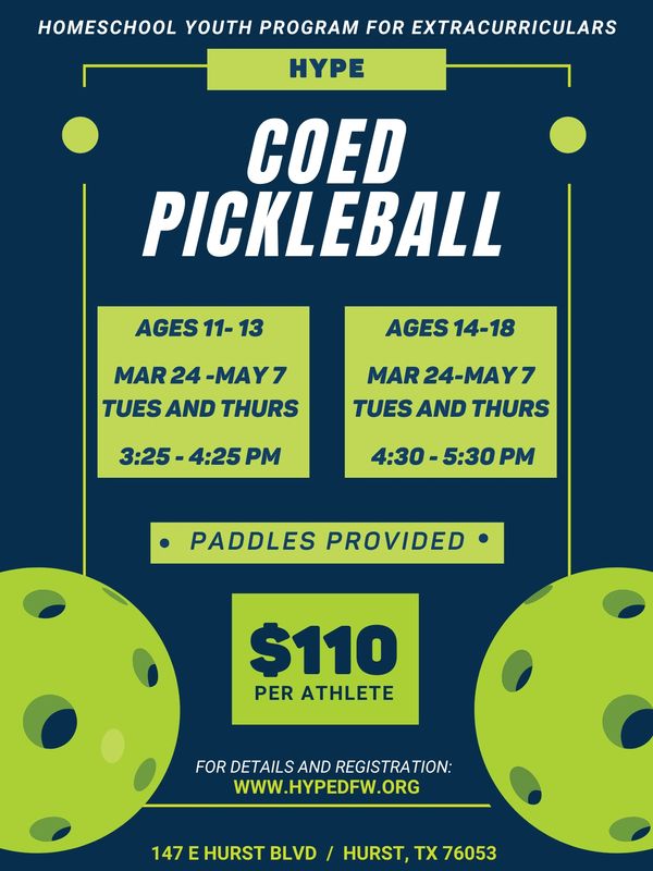Register soon! HYPE Pickleball will be capped at 14 participants per age group.